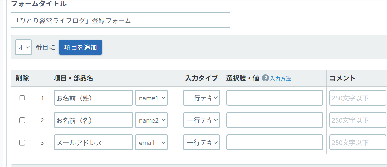 登録フォームの作成は至ってシンプルです。