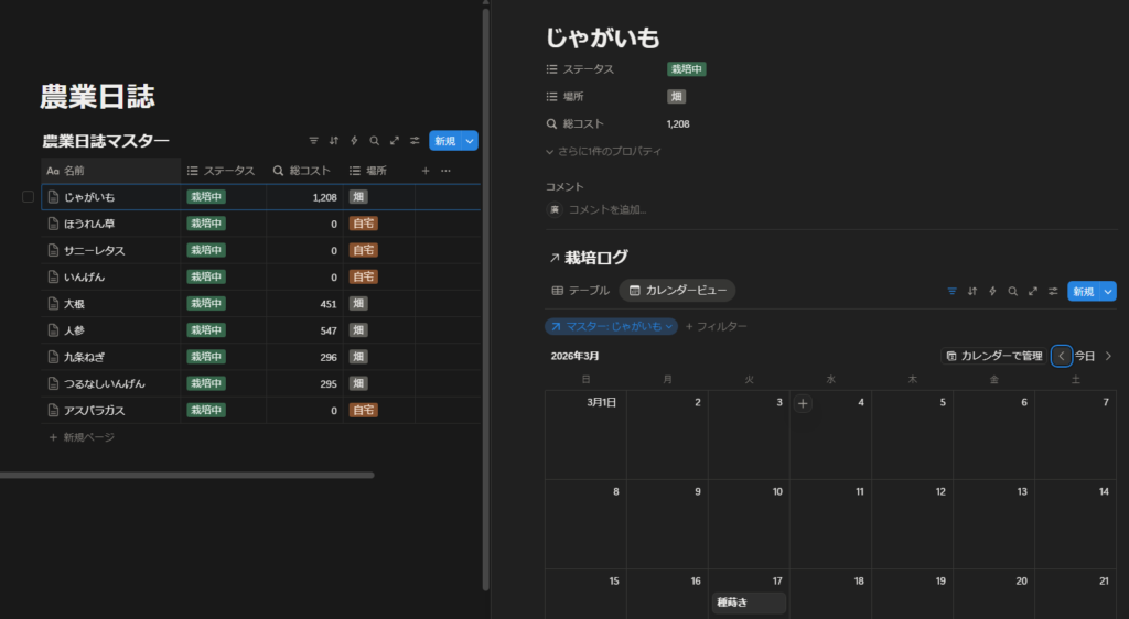 そのため、農業日誌のようなものをNotionで作成し、