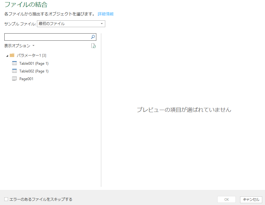 Tableはパワークエリが推測したデータになるので、PDF全体のデータを取得できるPageを選ぶ。