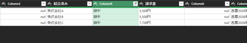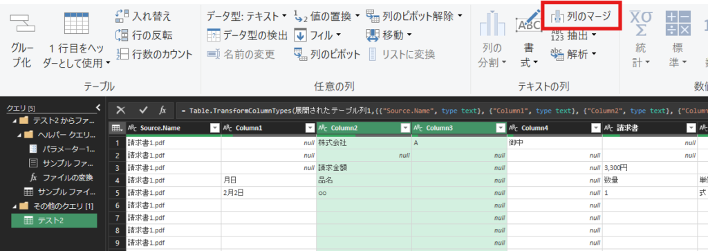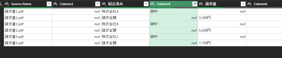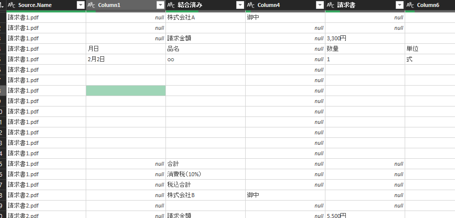 そういった場合、パワークエリでPDFの請求書からデータを抽出し、