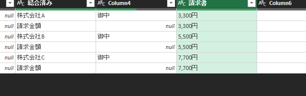 • 請求書列→整数