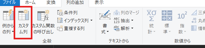 カテゴリーが表示されるように「カスタム列」を追加していきます。