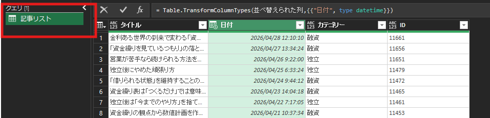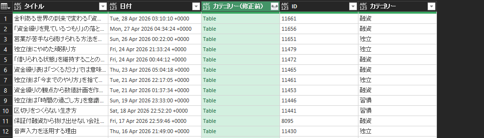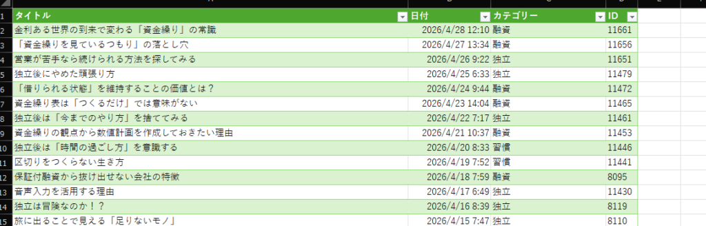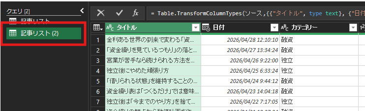 そこで、私は、パワークエリを使って記事一覧をExcelで管理するようにしています。