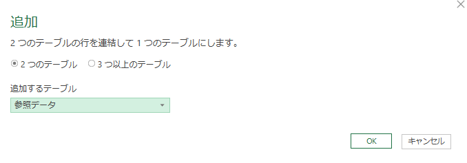 別ウィンドウが開かれるので、「追加するテーブル」を「参照データ」として「OK」です。