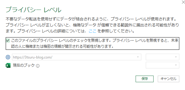 「続行」→「このファイルのプライバシーレベルを…」にチェックを入れて、「保存」。