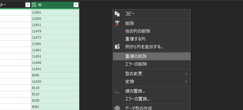 あとは、「記事リスト」→「ID」を選択→右クリック→「重複の削除」をすれば完成です。