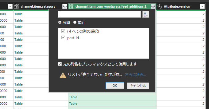 if [#"カテゴリー(修正前)"] is table then Text.Combine(Table.Column([#"カテゴリー(修正前)"], "Element:Text"), ", ")