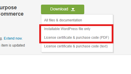 真ん中の「Download」をクリックして、「Installable WordPress file only」と「License certificate & purchase code (PDF)」をダウンロードします。