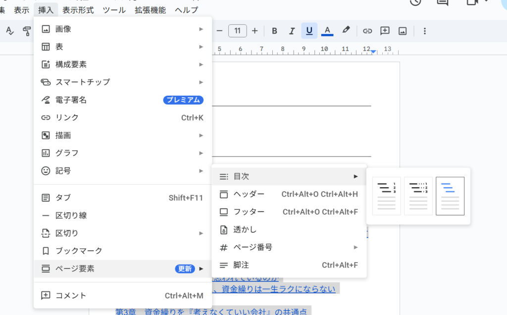 次は、目次の挿入。