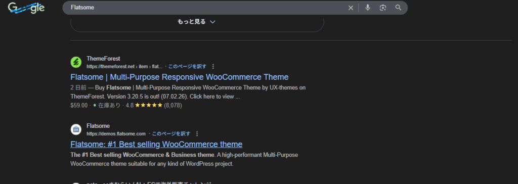 Flatsomeと検索すると、1番上に出てきます。